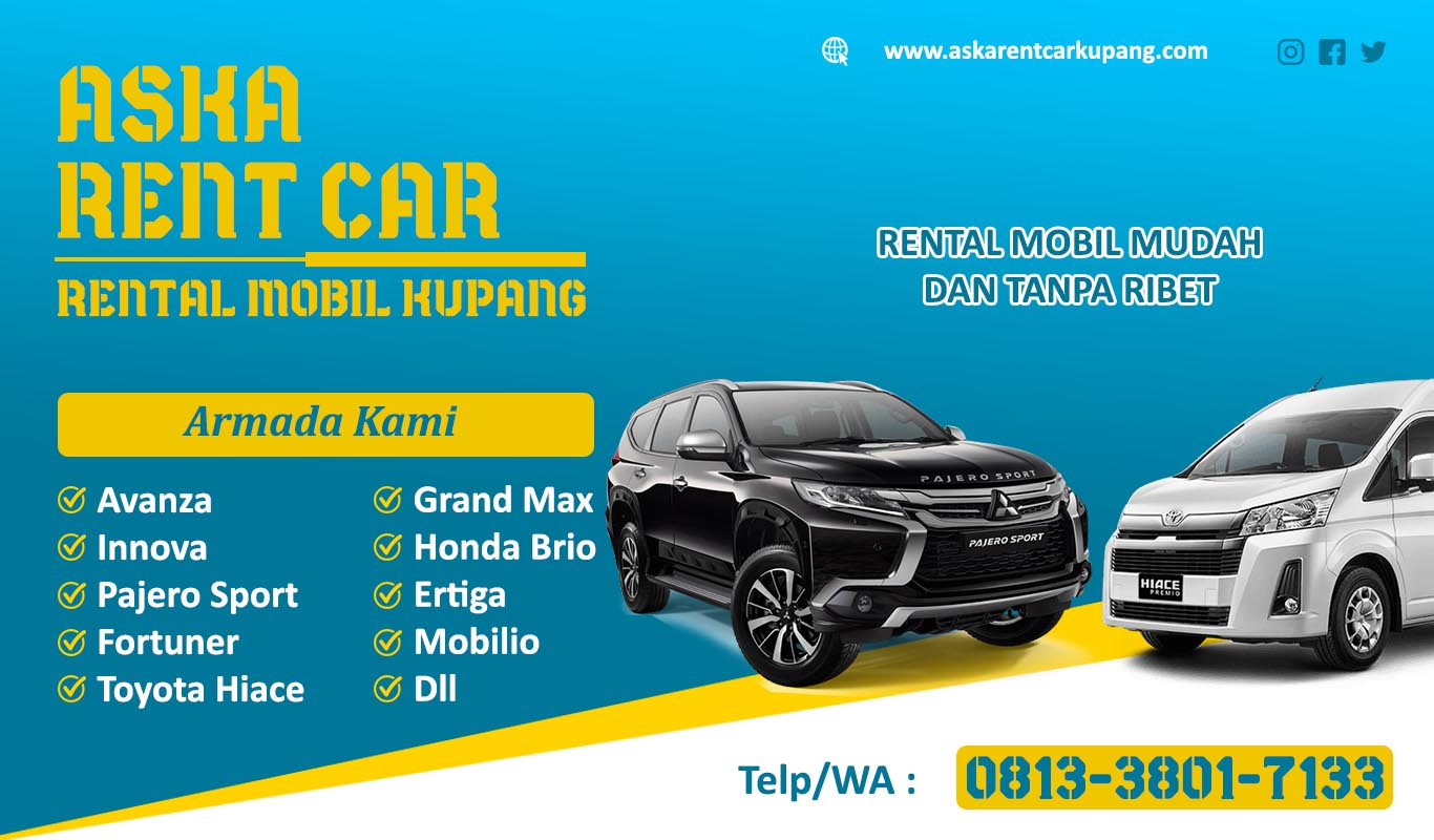 Merupakan layanan sewa mobil profesional di kota Kupang, menawarkan beragam armada mobil untuk disewakan seperti Avanza, Innova, Pajero Sport, Fortuner, Toyota Hiace, Grand Max, Honda Brio, dan lainnya.